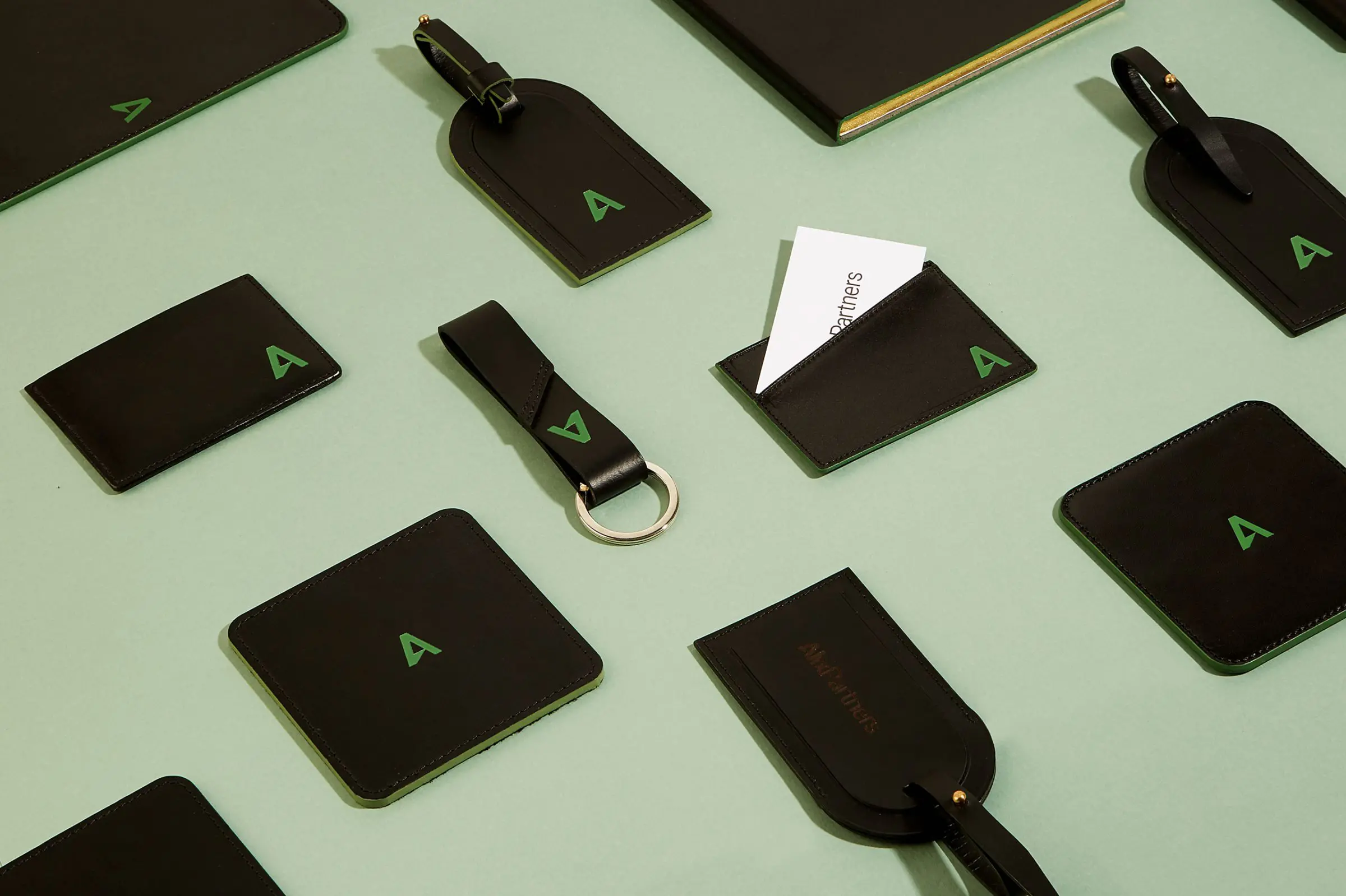 An elegant collection of small leather goods to communicate Alix Partners’ refreshed branding. Contrasting inked edges as well as a selection of finishes – embossed, laser-etched or foiled – offer a range of expressions, from subtle to strident.